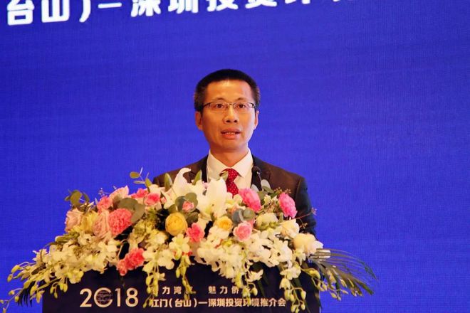 江门市副市长蔡德威代表江门市委、市政府发表了热情洋溢的致辞。他表示,举办投资环境推介会,是落实“招商引资突破年”的一项重要举措。台山市委、市政府紧紧围绕江门市委、市政府的决策部署,抢抓粤港澳大湾区建设和“珠西战略”的历史机遇,不断发挥自身在区位交通、土地资源、电力资源、产业基础等方面的优势,加快“万亩园区”的规划建设,优化产业布局,引进了一系列优质项目。接下来,江门市将一如既往地支持台山的发展,共同将台山打造成为粤港澳大湾区的投资新热土。